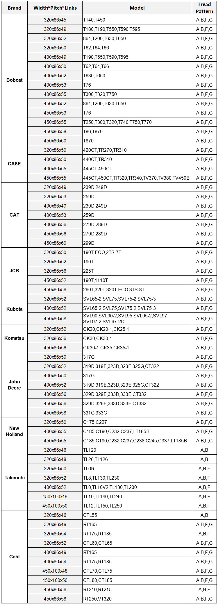 | 6.Application: | Fits for Track Skid Steer Loader |